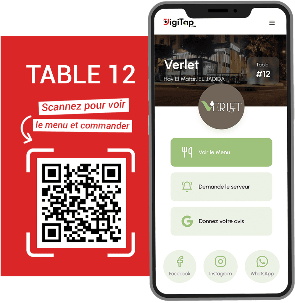 Offrez à vos clients un accès direct à votre menu via un QR code, leur permettant de parcourir facilement et sans effort toutes les options que vous proposez. Ils pourront découvrir en un instant l'ensemble de vos plats et choisir ce qui leur plaît.